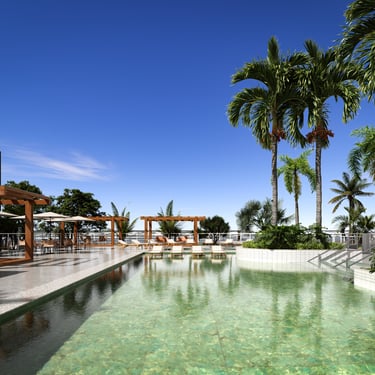 Mais de 100m² de bem-estar com academia, área funcional e spa.Pool Island
